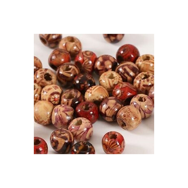 100 pcs round printed wooden beads, DIY jewelry loose beads beads Y3X4