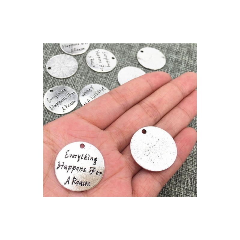 1X(Pack of 10 Alloy Ancient silver "Everything happens for a reason" Round R0T3