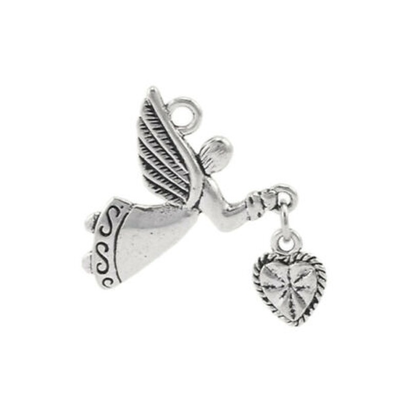 1X (10 db ezüst tónusú angyal szerelmes szív charm medálok 25x22mm (1 &quot x7 / 8&quot ) R6A1)