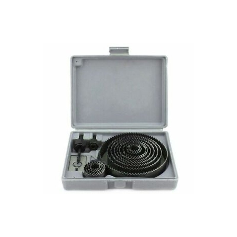 1X(High quality 16 piece hole saw set for cutting smooth clean accurate holes. All pieces in the set are heat treated enabling them to be suitable for soft and hard wood, plasterboard, plastic and non ferrous metals. All pieces come in a handy blow moulded carry/storage case.
