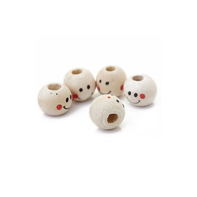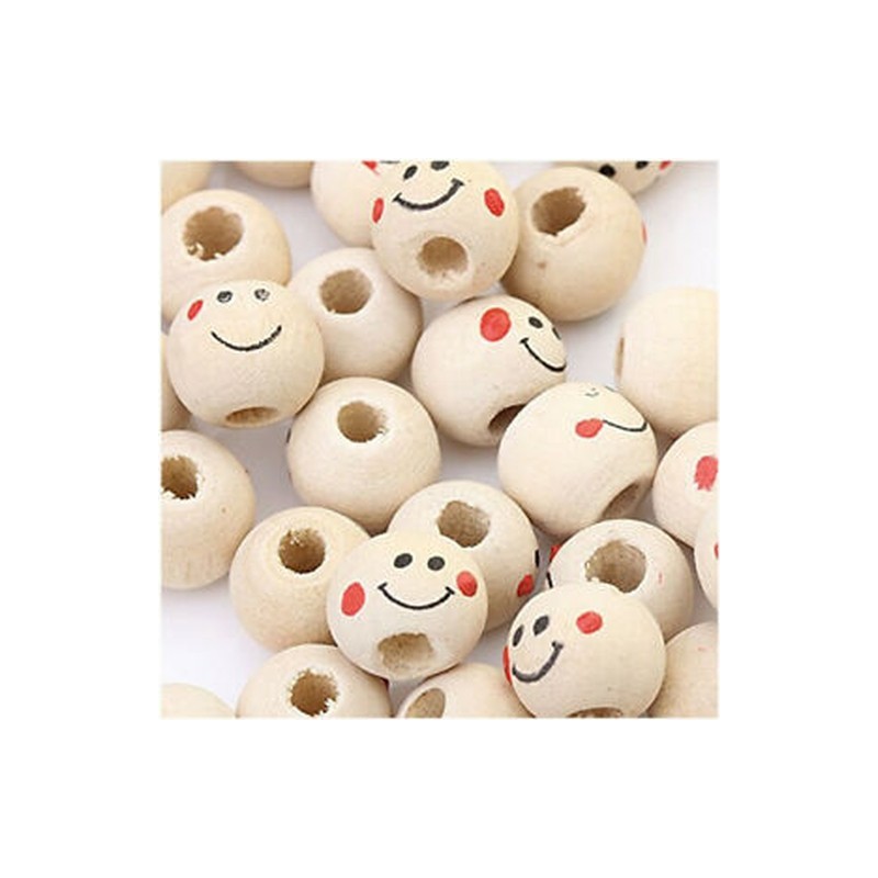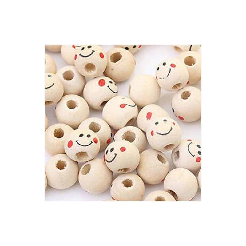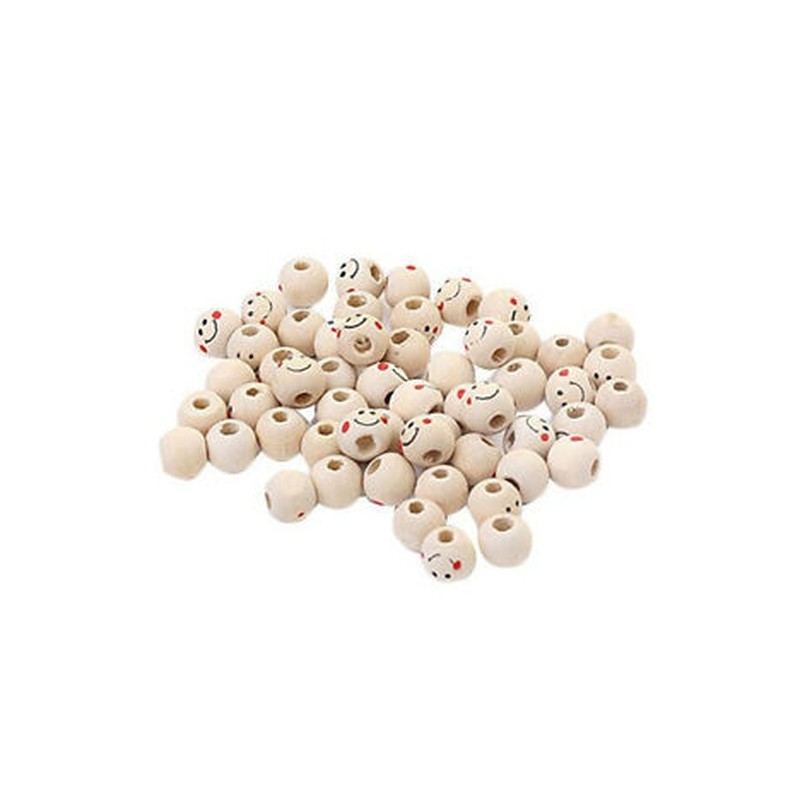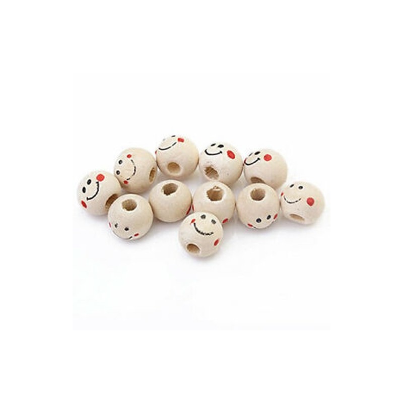 1X(Wooden Round Smile Face Loose Beads 10mm (Pack of Approx. 40pcs) G3V8)