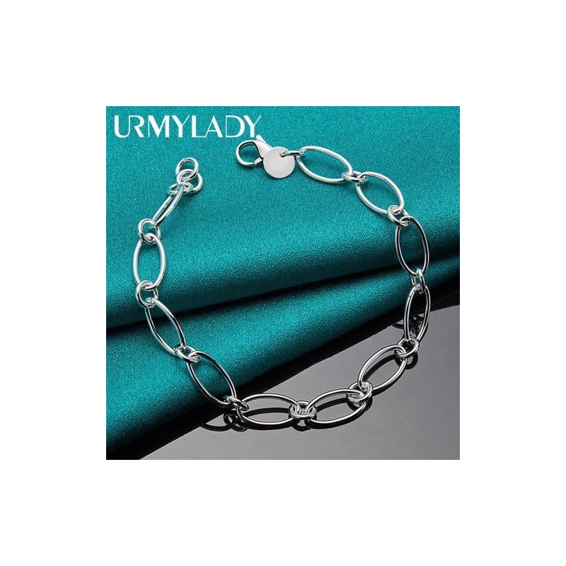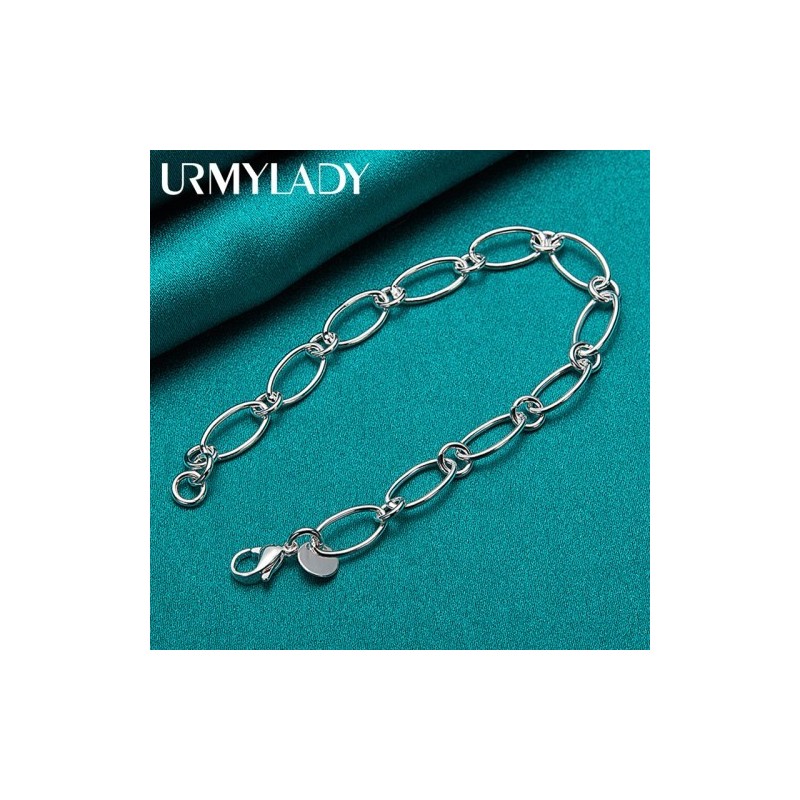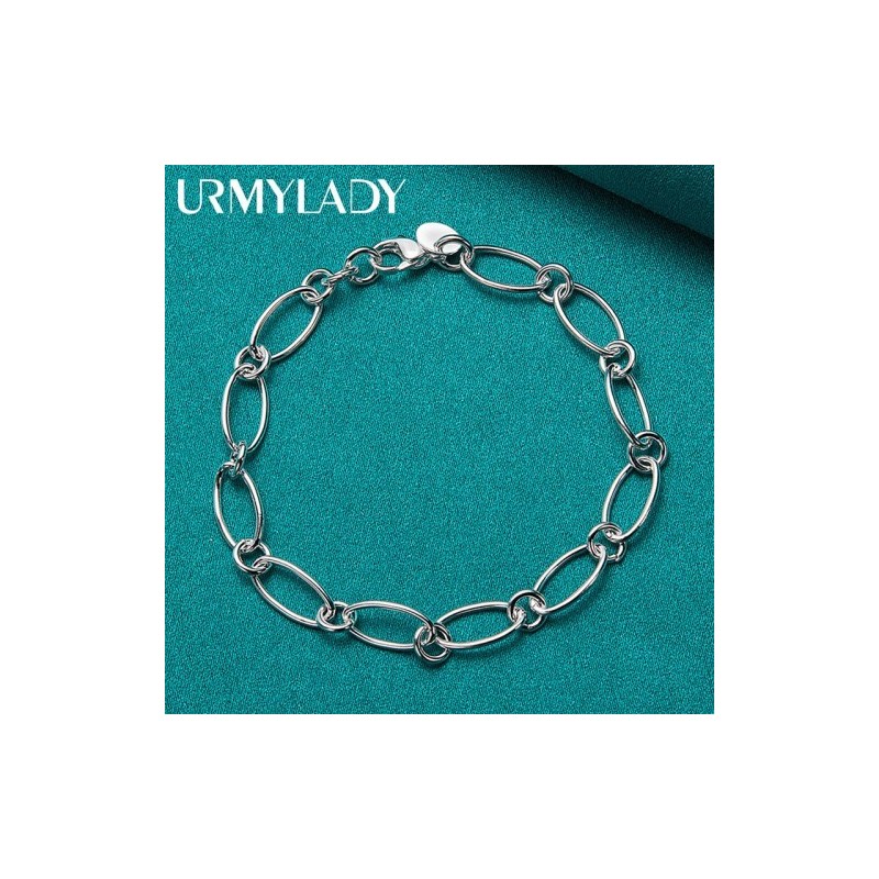 URMYLADY 925 Sterling Silver Simple Chain Bracelet For Woman Man Wedding Party Fashion Jewelry