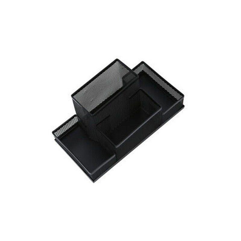 Features durable metal material, 4 compartments, mesh style, black color, etc.