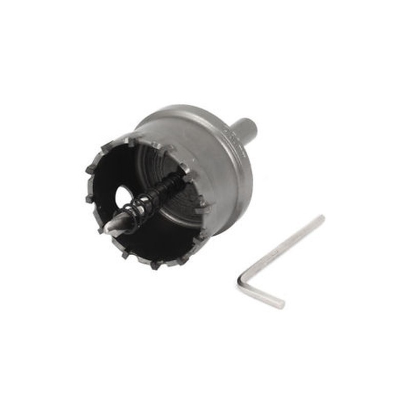 Product Name : Hole Saw;Fit for : Alloy,Stainless Steel,Wood Drilling;Cutting Diameter : 50mm/ 2"Hole Saw Cuting Depth : 26mm / 1";Shank Size : 25 x 10mm / 1" x 0.4"(L*D);Chip Outlet(SideHole)Dia. : 10mm / 0.4"Hole Saw Overall Length : 80mm / 3";Twist Drill Bit Diameter : 6mm / 0.24";Twist Drill Bit Flute Length : 23mm / 0.9"Hex Wrench Diameter : 3mm / 0.12";Material : Tungsten;Color : Silver Tone , GrayThis hole saw is especially designed to cut alloy and stainless steel materials.Suitable to be installed onto hand held drill, table mounted drill, or other drills.10mm Dia Round Shank, it is not a whole round shape with 3 flat surfaces antislip design .Used for 10mm professional electric drill provides excellent performance, here is not included.The hole saw...