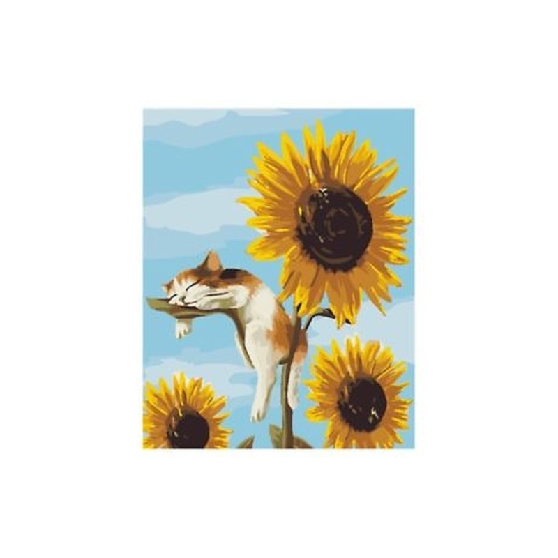 5X(Frameless Cats Sunflowers Oil Painting DIY Digital Coloring Wall Arts Pi V7M8