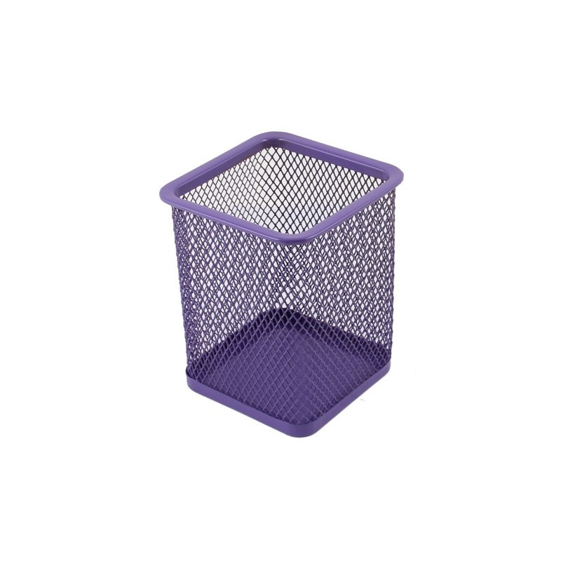 5X(Purple Metal Rectangle Shaped Mesh Pen Pencil Holder Organizer B4G3)