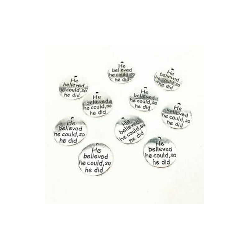 Pack of 10 Alloy Ancient silver "He believed he could,so he did" 25mm Round G6L2