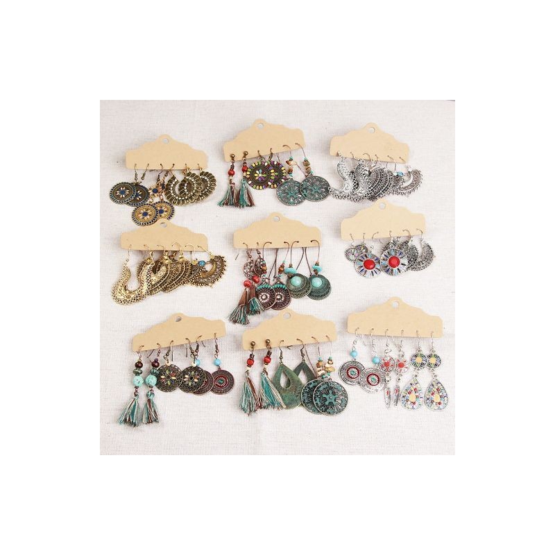 Boho Ethnic Silver Color Earrings Set for Women Vintage Wood Tassel Dangle Earring 2020 New Fashion Earings Brincos Jewellery