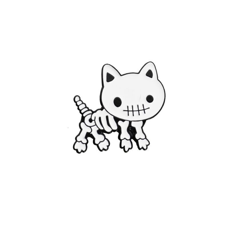 Sweet,Like an angel Cat Enamel Pin Hugging Couple Skeleton Bone Black White Cat Animal Brooches Lapel Badge Jewellery Accessories