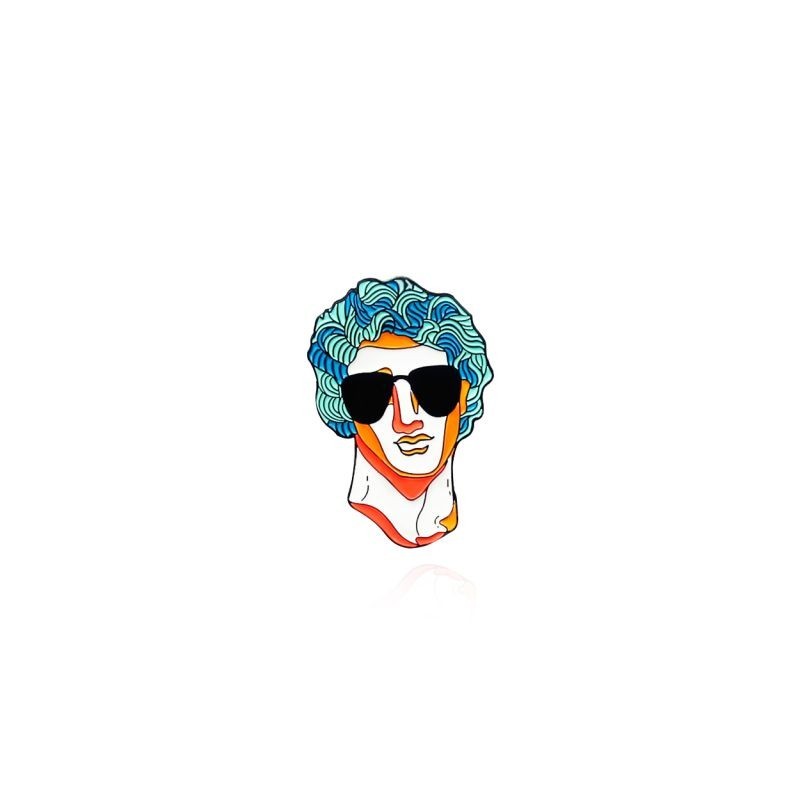 Abstract art Statue Enamel Pins Star Universe Brain Statue Blue Flower Hair Broken Statue Brooches Lapel For Women Badges Gift