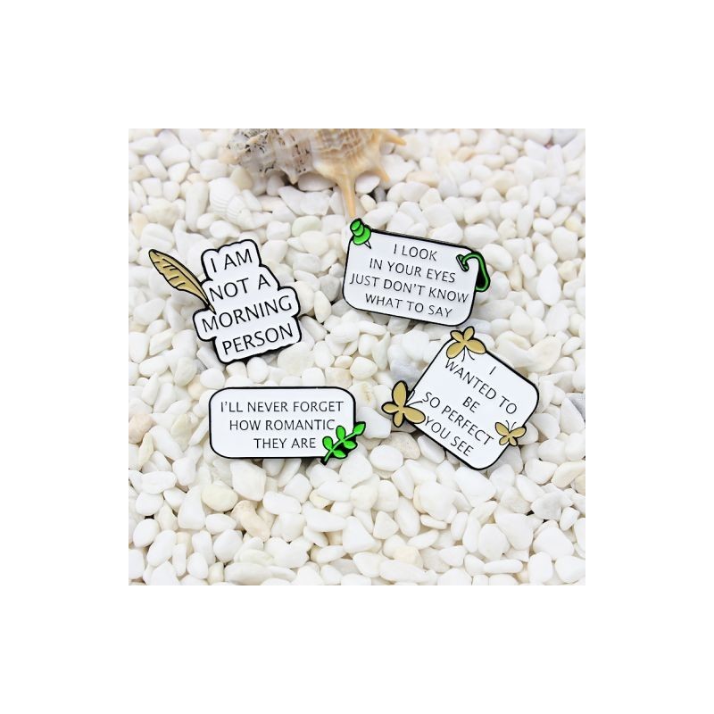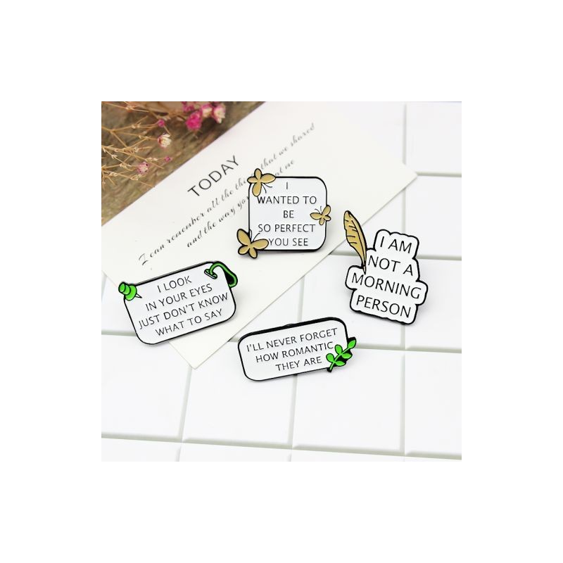 Fun White Quotes Slogan Enamel Pin I Wanted To Be So Perfect,l'll Never Forget,I Look In Your Eyes Brooches Lapel Jewellery Gift