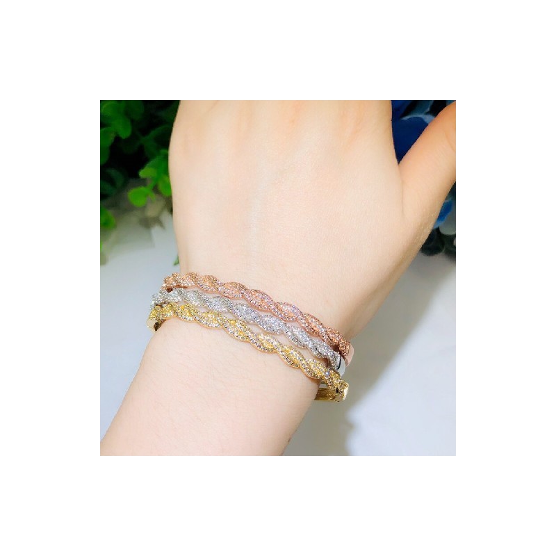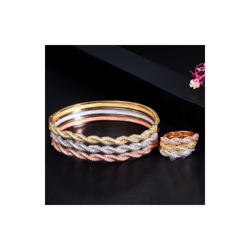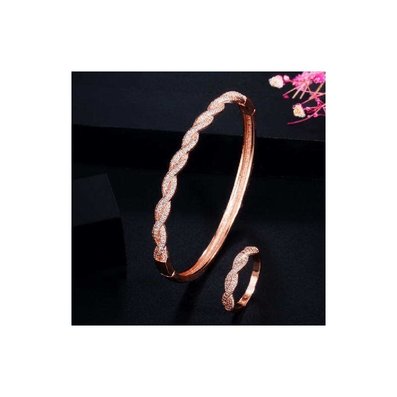 CWWZircons Twist Lines Cubic cirkónia Dubai Rose Gold színű nyitott mandzsetta menyasszonyi afrikai karkötő karkötő és gyűrű ékszer szett T458