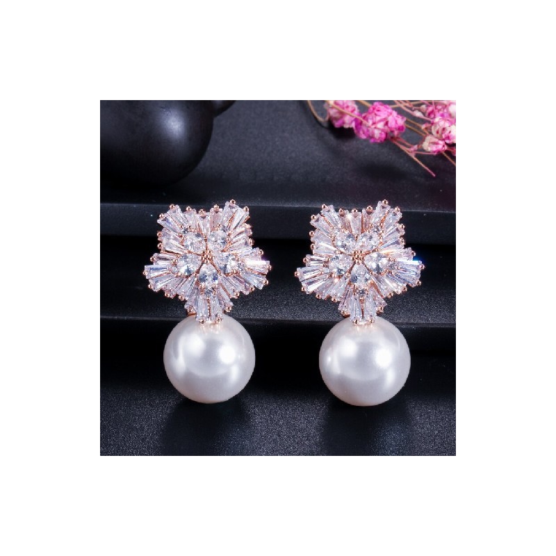 CWWZircons 2022 új érkezés hóvirág dizájn női nagy csepp fehér gyöngy fülbevaló cirkóniával karácsonyi ajándék CZ069