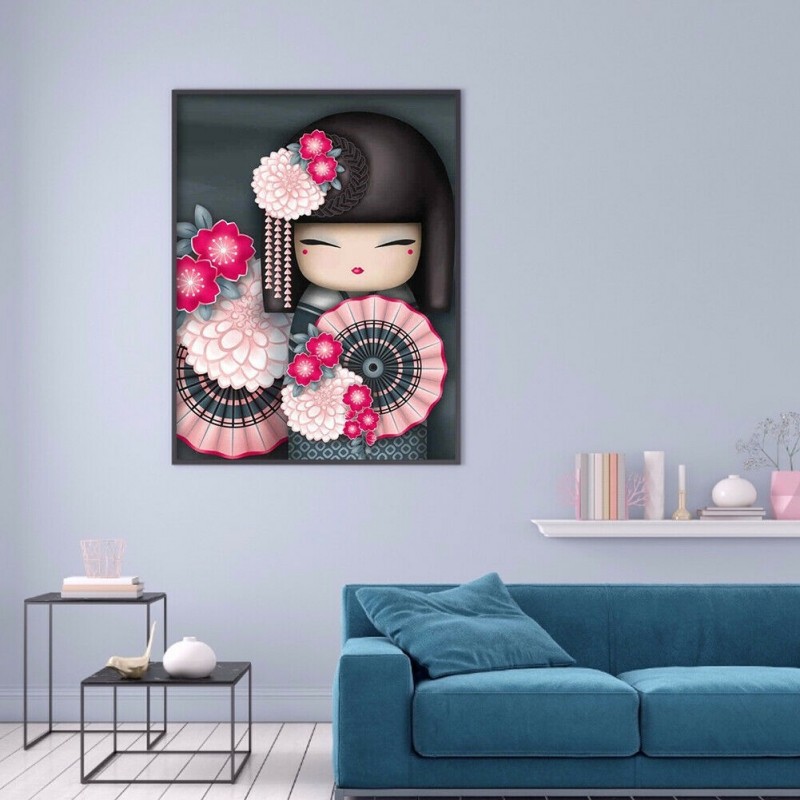 Diamond Painting Kokeshi Doll 5D Full Round Wall Picture DIY Set 30x40cm