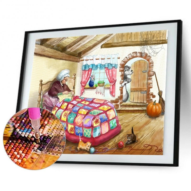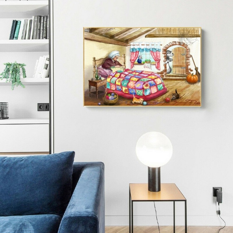 Chinkyo Diamond Painting Oma im Bett DIY Full Round Drill Wandbild 40 x 30