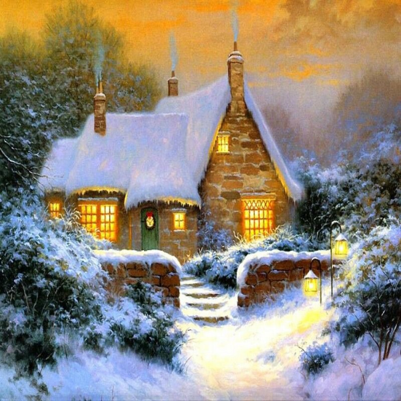 30x30cm 5D DIY Full Drill Round Diamond Painting Snow House Diamond Embroidery Mosaic Kit Home Decor Bead Art DIY Gift