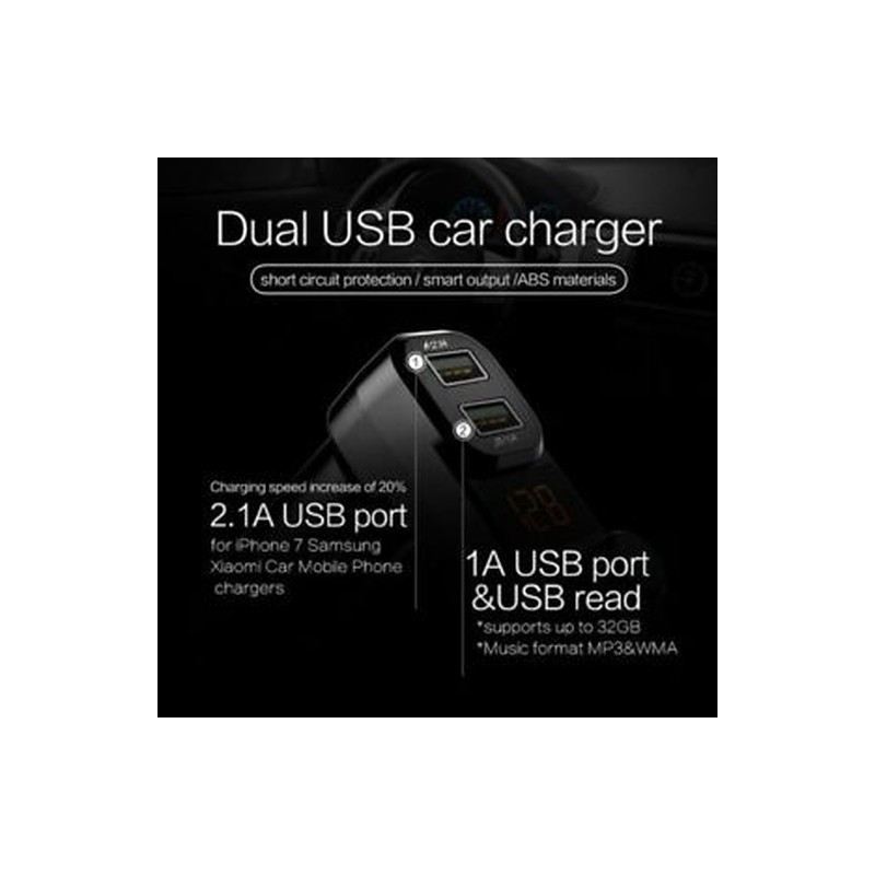 Support folder switch playback function and song category playback function; Support power off memory function; Support simultaneous charge for 2 mobile phones, support listening to music while charging; Support noise cancellation function, support built-in noise cancellation circuit for clearer calls sound
