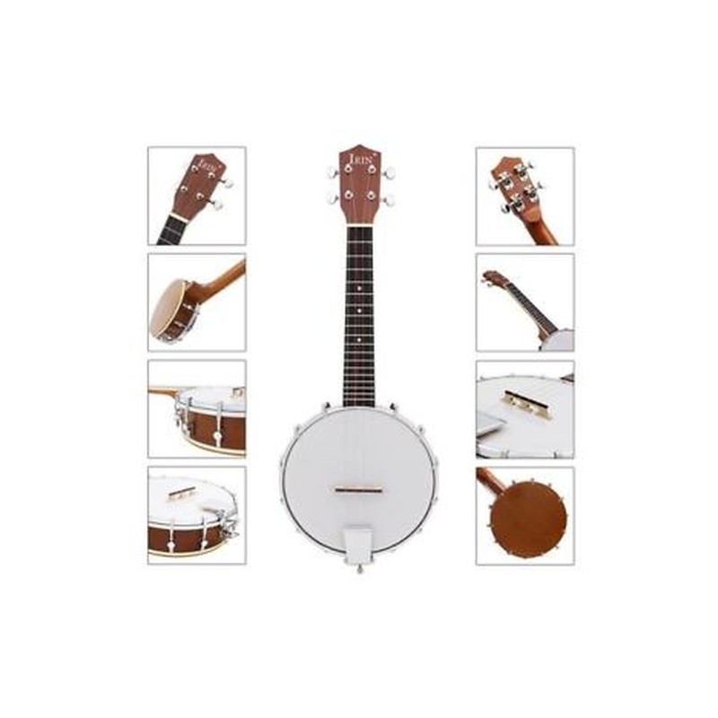 It features the distinctive sound of a banjo and the small scale tuning and playing style of a Ukulele.