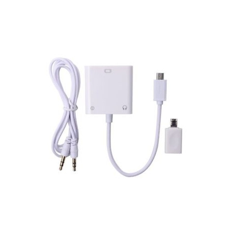 Connect adapter to TV / Monitor with VGA cable.Micro-USB port to connect your Samsung, HTC, LG etc. smartphones.Listen to stereo sound by connecting audio adapter with the included 3.5mm audio cable.Watch movies and charge your devices simultaneously by connecting additional USB-DC cable to power source.Build-in receiver converts single to analog audio.Color: White Cable Length: 20cm / 7.87in Connector: Micro USB 20 pin male > HDMI / VGA female Mini Display Port: 1.1a standard ESD Protect: Human Body Mode at 8kV, Machine Mode at 400 V, and Charged Device Mode at 2kV. PC: VGA, SVGA, XGA, SXGA, and UXGA. Standby Mode Current: 64Ua Resolution: Up to 1920 * 1080 HDTV: 480i, 576i, 480p, 576p, 1080i and 1080p. Compatible with: Apple iMac, Mac Mini, Mac Pro, Mac...