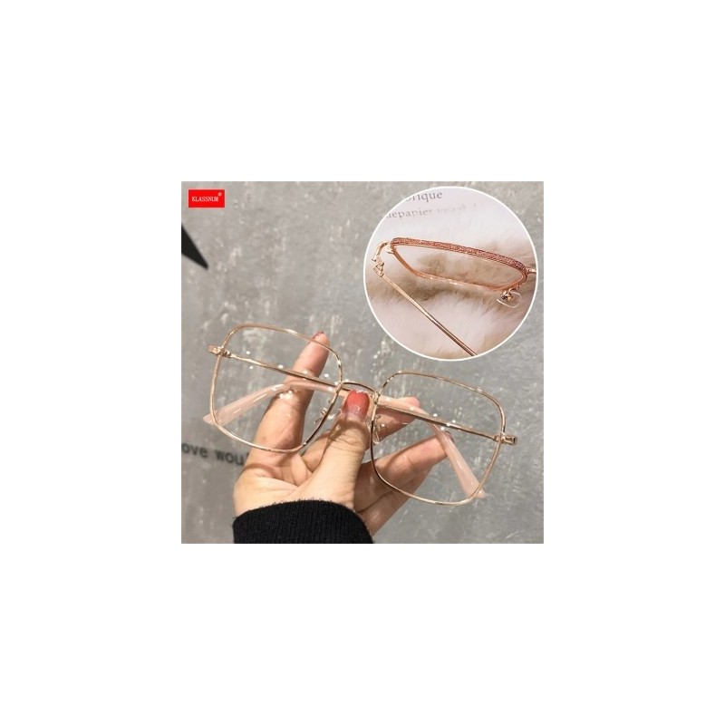 KLASSNUM Computer Glasses Anti Blue Light For Women Oversized Square Diamond Studded Glitter Frame Luxury Metal Frame Eyewear