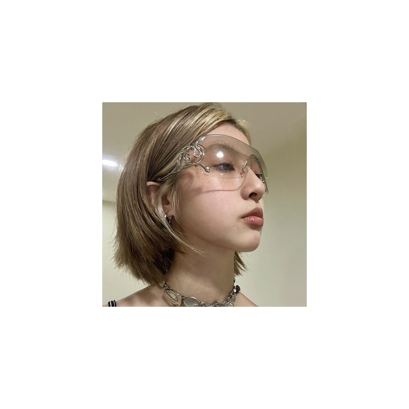 Y2k keret nélküli napszemüvegek női stílusos kígyósugarak fém lábak szemüvegek luxus színátmenetes lencse körbetekerve punk egyrészes napszemüvegek