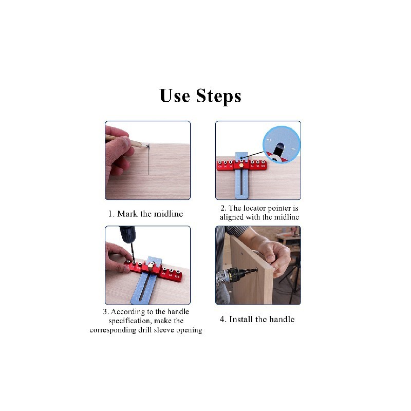 Fiók fogantyú Lyukasztó lyukkereső Gyors lyukasztó szekrény ajtó fogantyú beszerelési segédeszköz Alumínium famegmunkáló furatkereső