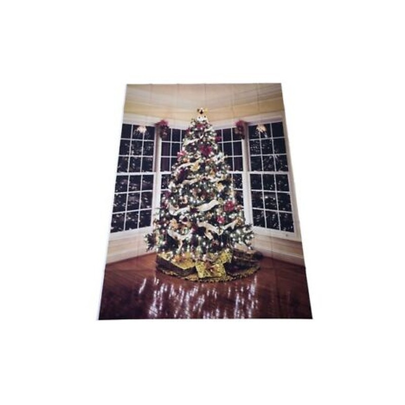 Élethű karácsonyi életkép hatású háttér: Feldíszített karácsonyfa, karácsonyi díszekbe öltözött szoba.