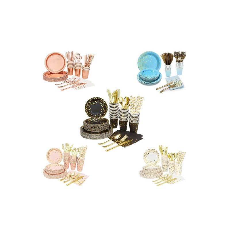 80 Buah Alat Makan Pesta Sekali Pakai Termasuk untuk Piring Kertas Pesta Ulang Tahun, Serbet, Gelas, Pisau dan Sendok Garpu Plastik
