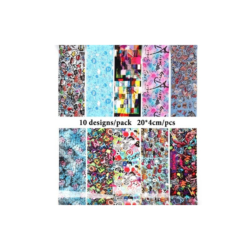 10PCS Transfer Foil For Nails Cute Graffiti Nail Art Design Adhesive Sticker Wraps Letters Decals Manicure Accessories GL4122