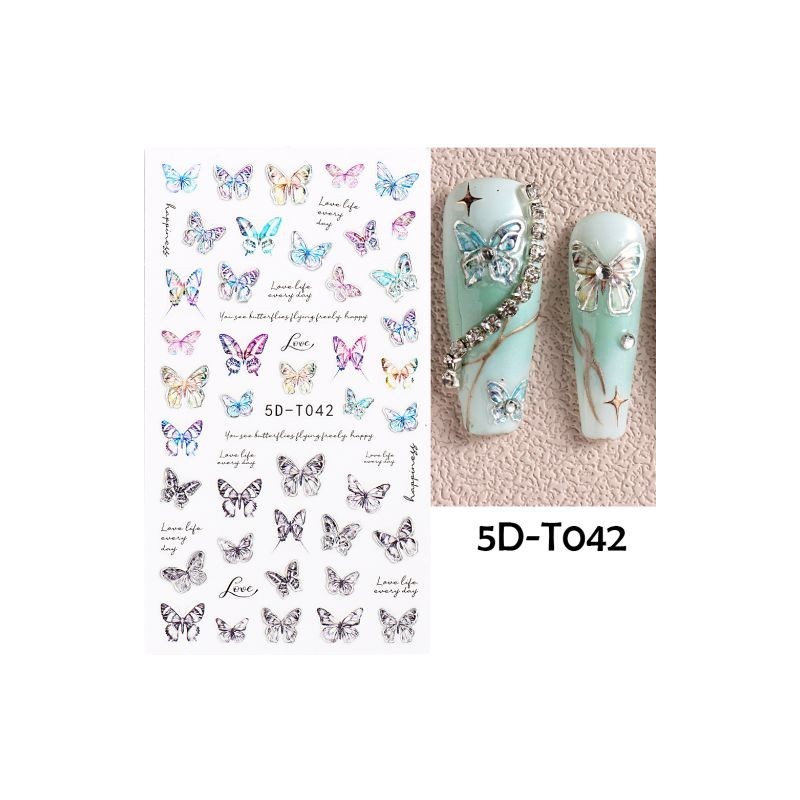 5D Embossed Butterfly Nail Stickers Gradient Colorful Butterfly Women Face Nail Decal Summer Manicure Decoration Wraps GL5D-T044
