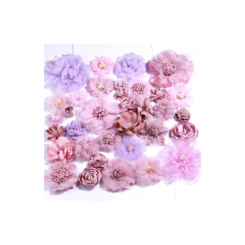 5Pcs Purple Pink Series Satin Chiffon Fabric Flowers For Baby Girls Headbands Head Flower For Hair Accessories Craft Projects