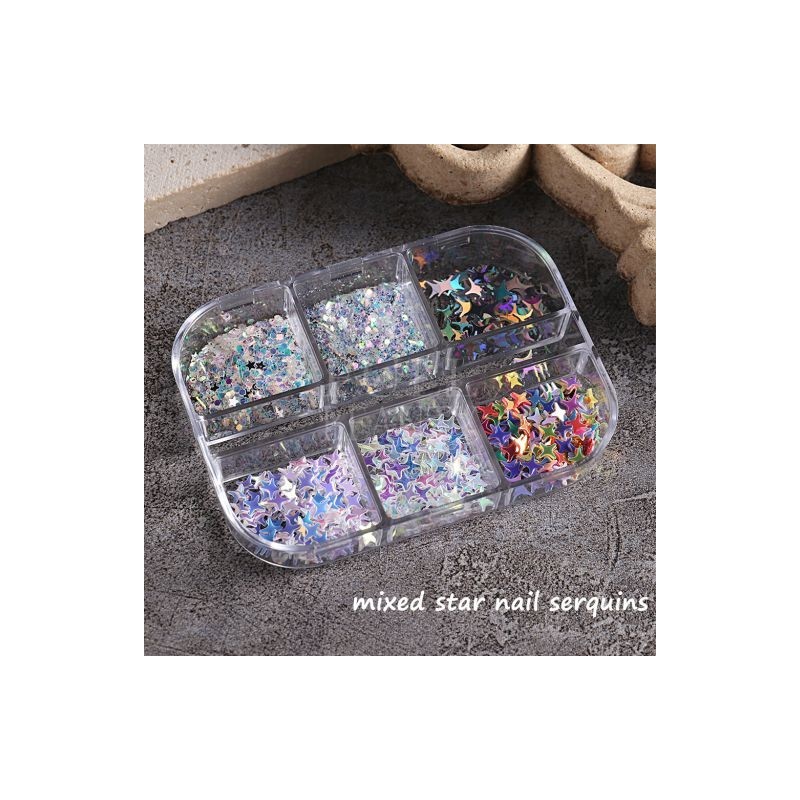 Star Holographic Nail Sequins Rainbow Mix Hexagon Nail Glitter Summer Decoration Mermaid Dust Flake Manicure Accessories GLXMS