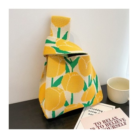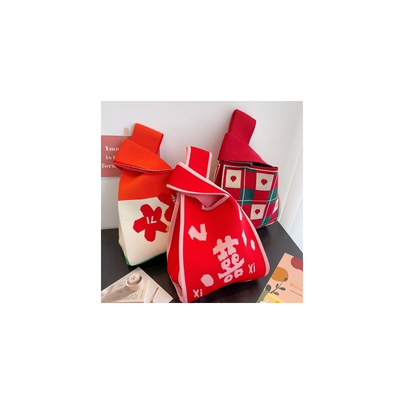 1pcs Handmade Knit Handbag Women Mini Knot Wrist Bag Japanese Casual Color Tote Bag Student Reusable Shopping Bags 20x35cm