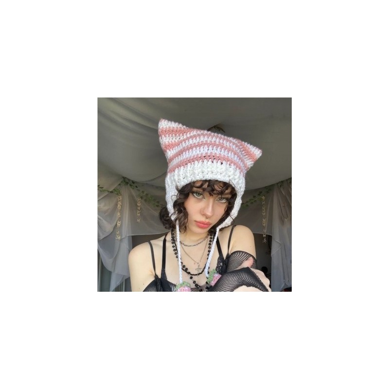 Name: Stripe Knitted Cat Ear Hairball Cap