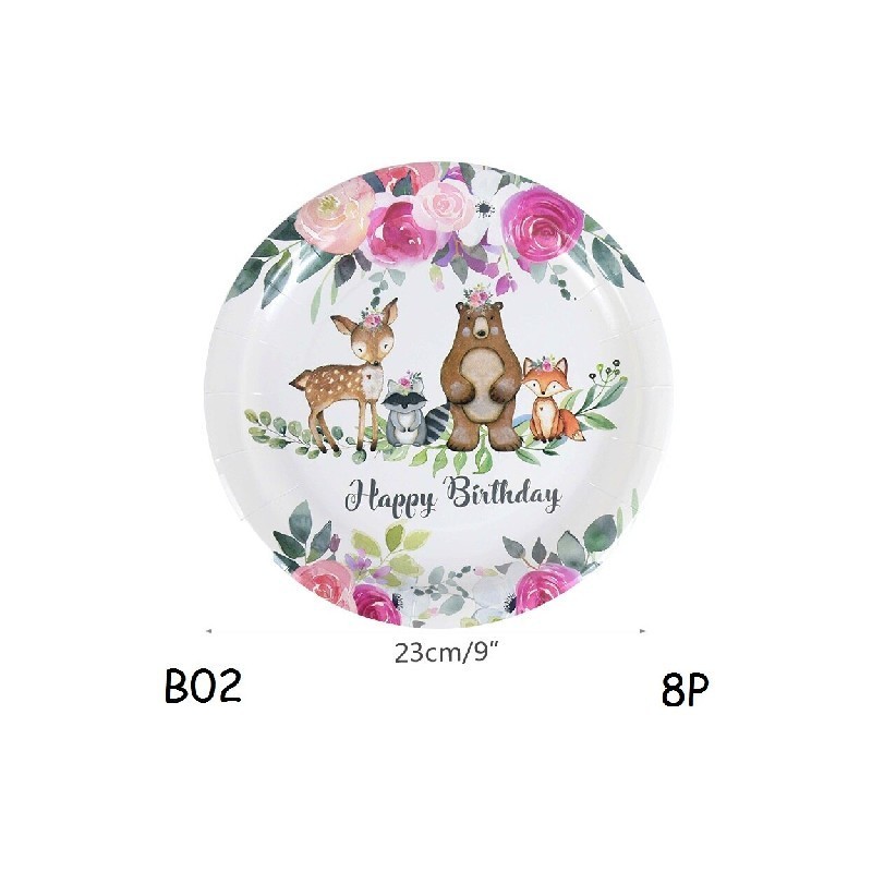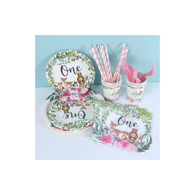 Disposable Tableware Plate Cup Napkin Banner Knife Fork Spoon Deco Kitchen Supply Tablecloth Straw DIY Forest Animal Theme Party