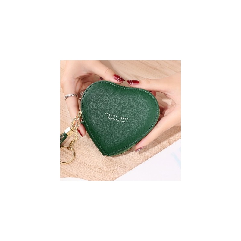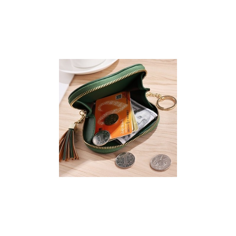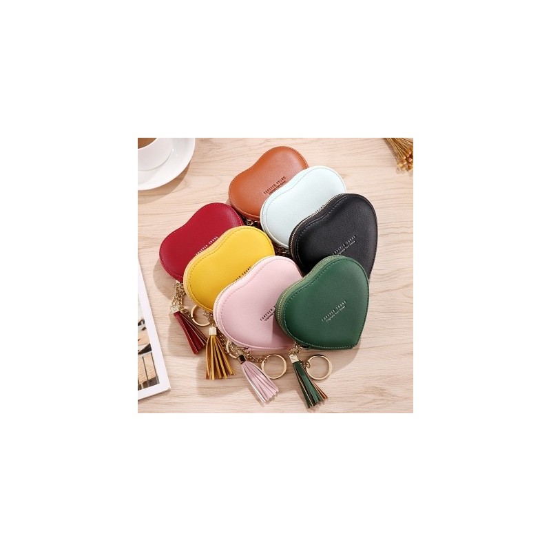 Fashion Shape Heart Women's Wallets Coin Purse Key Chain Card Holder Tassels Zipper Mini Leather Money Bag Keyring Clutch Girls