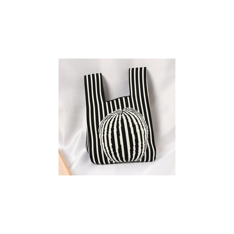 New Geometric Pattern Knitted Bag Japanese Thin Stripe Plaid Tote Bag Women Casual Color Handbag Keys Purse Handle Bag 2023 Gift