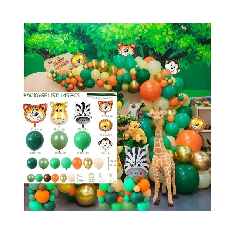 Jungle Safari Theme Balloons Garland Arch Kit with Tropical Palm Leaves for Kids Bithday Baby Shower Party Decoration Supplies