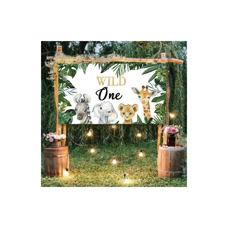 Trópusi dzsungel szafari Wild One 1. születésnapi parti háttér kellékei aranyos erdei állatparti újszülött zuhany fotó hátterek