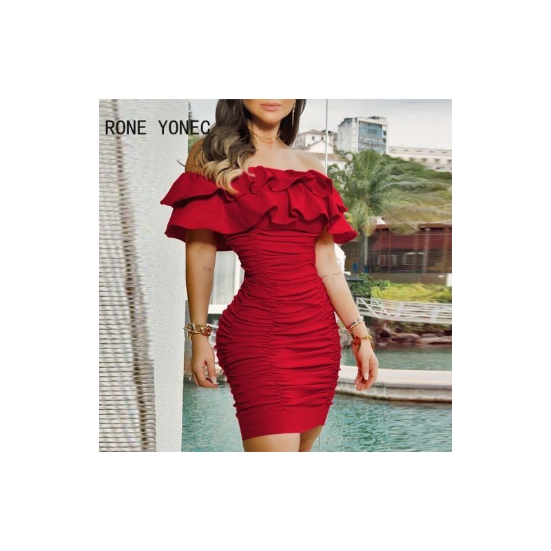 Elegáns női, váll nélkül, fodros szegély, összecsukható mini Bodycon partiruhák