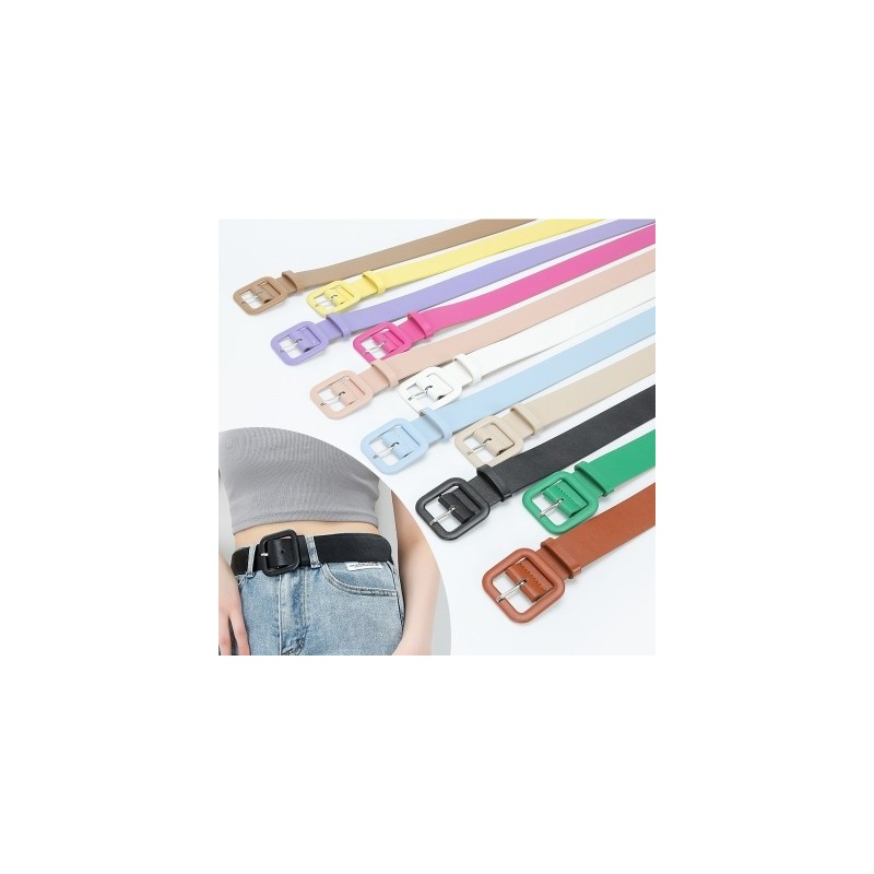 2023 New 11 colors Korean Style Square Buckle Candy Color Decorative Belt Women's Fashion Versatile Jeans Casual Pants Wide Belt