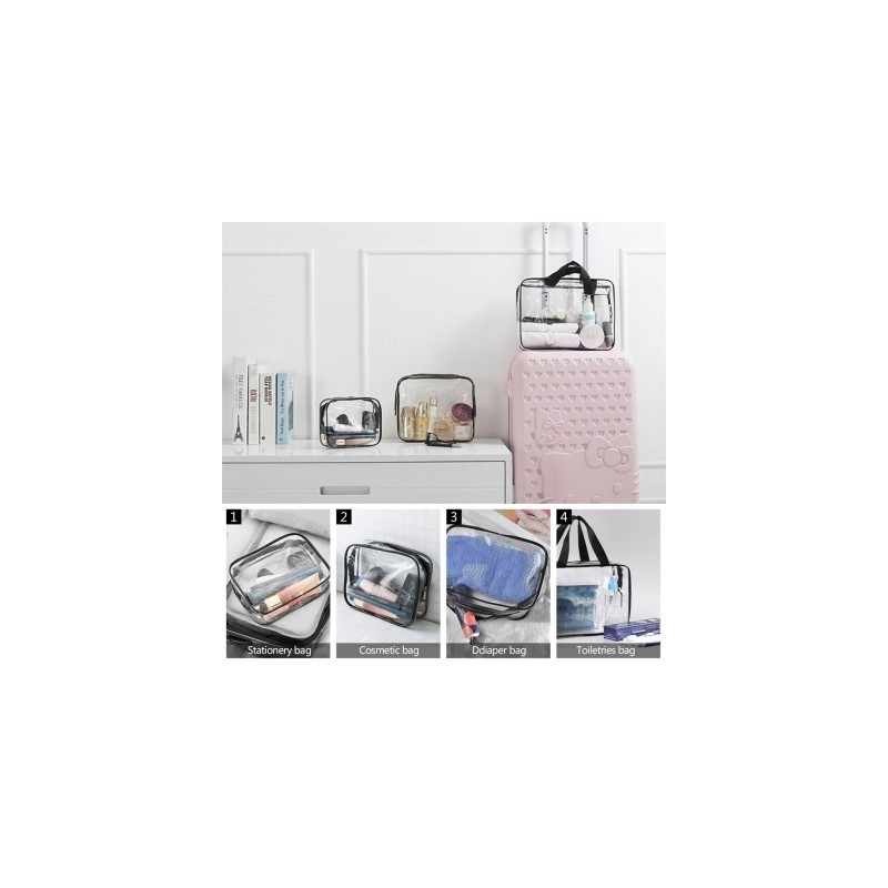 3 Sizes Transparent PVC Material Travel Bag Waterproof Cosmetics Makeup Toiletry Clear Wash Pouch Bag Travel Accessories Unisex