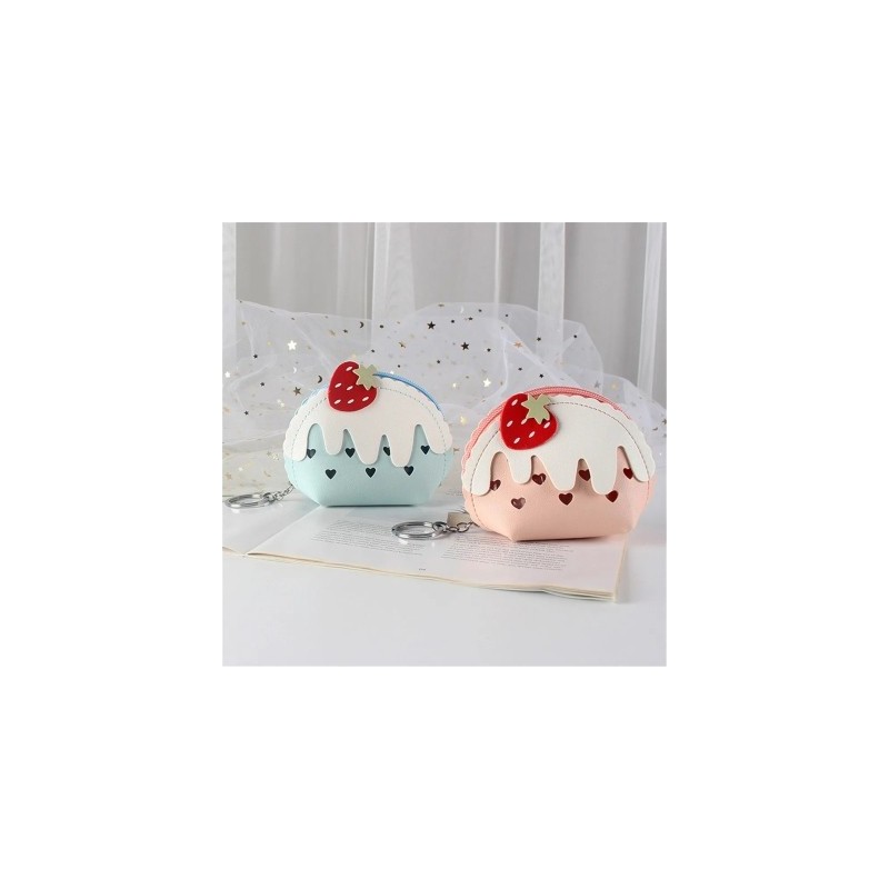 Mini Women Coin Purses Leather Small Wallets Card Holder Strawberry Ice Cream Key Earphone Money Bag Children Girls Zipper Pouch