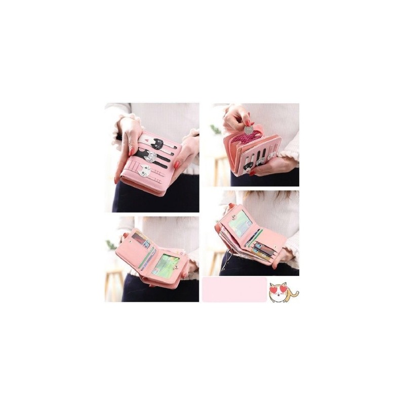 PU Leather Women Wallet Bifold Cartoon Cat Zipper Coin Purse Female Card Holder Short Clutch Girls Students Handbag Makeup Pouch