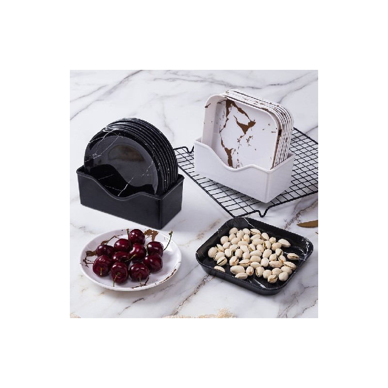 9 Buah/Set Piring Hidangan Penutup Bulat Pola Marmer Dapur Imitasi Melayani Piring Porselen Saláta Piring Bulat Nampan Kue Piring Keramik