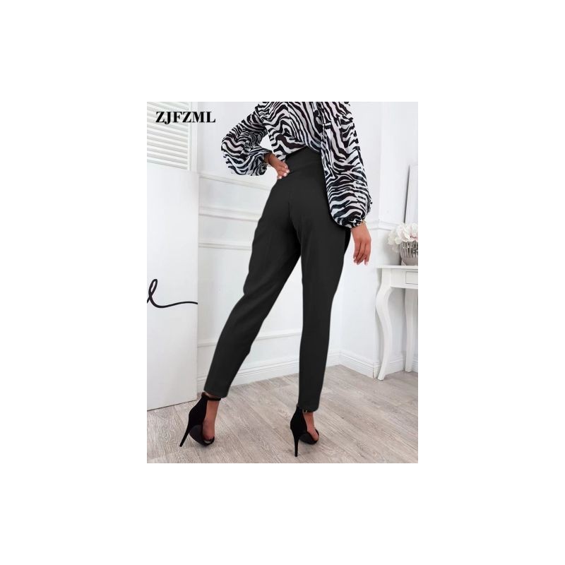 Elegáns divat női magas derekú gombos záródású ceruza hosszú nadrág irodai női üzleti munkaruha Egyenes bokáig érő leggings