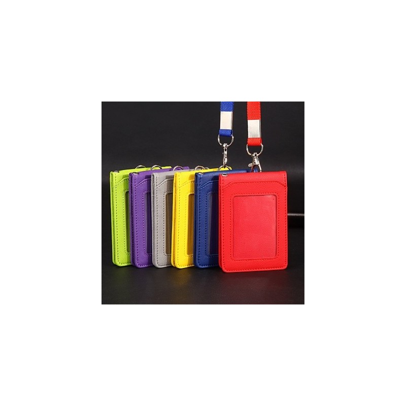 PU Leather Credit Card Holder Employee Name ID Card Cover Work Identity Badge Business Card Case Student Lanyard Bus Card Sleeve