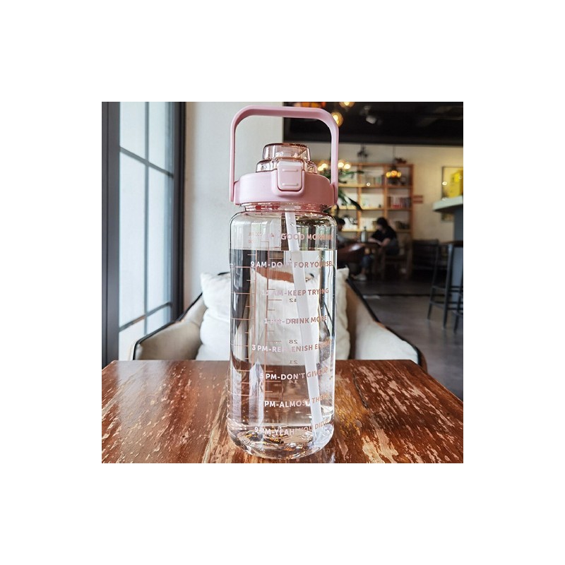 2 Liter Water Bottle with Straw Female Jug Girls Portable Travel bottles Fitness Jug with Time Marker Bike Cup Summer Cold Water